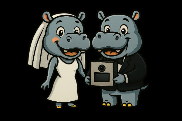 Ganz einfach! Weil Hippos gute Laune machen. Genau wie unsere Fotobox.
